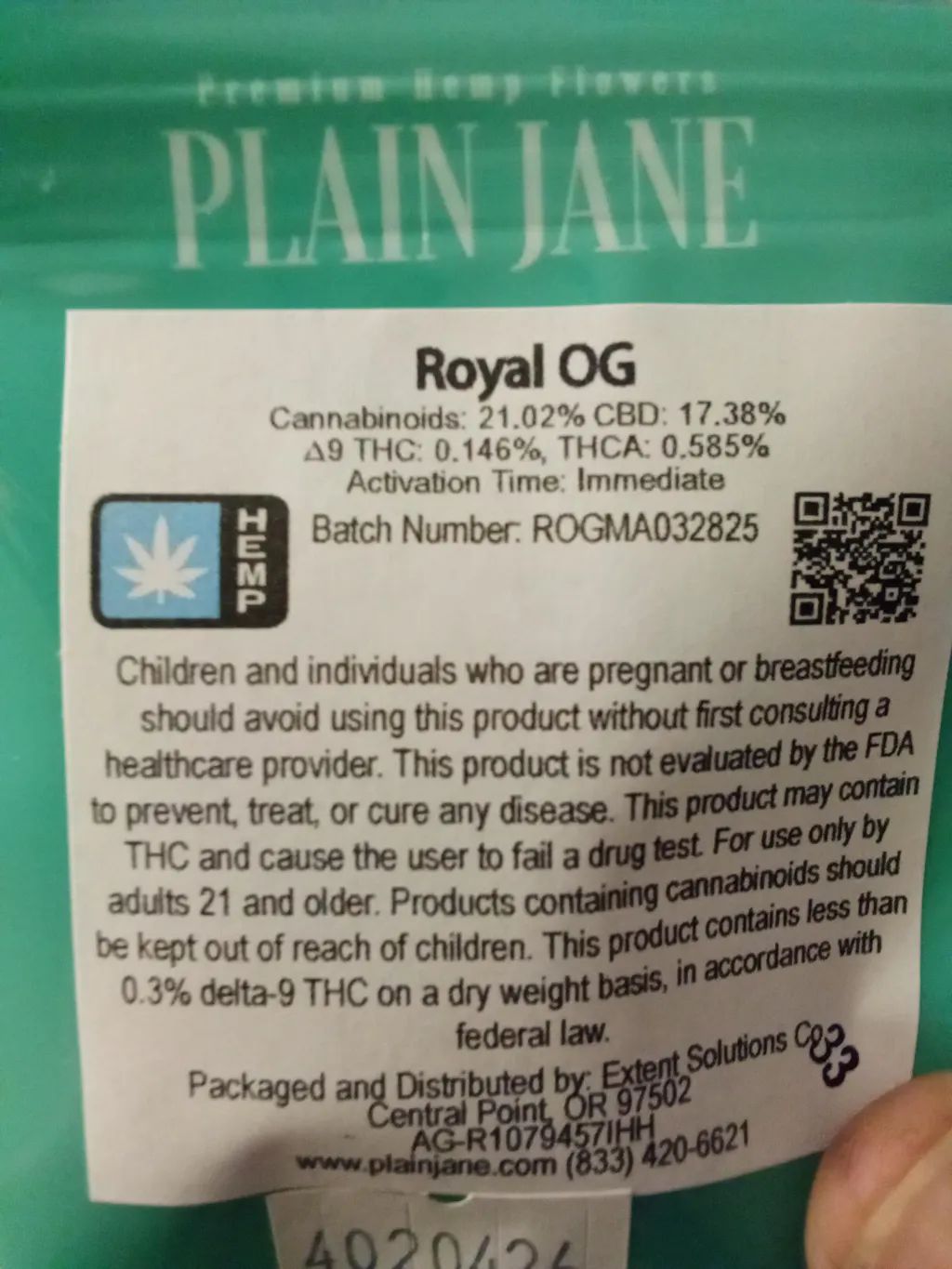 Plain Jane CBD Hemp Flower Sample (1 Gram – Surprise Strain!)